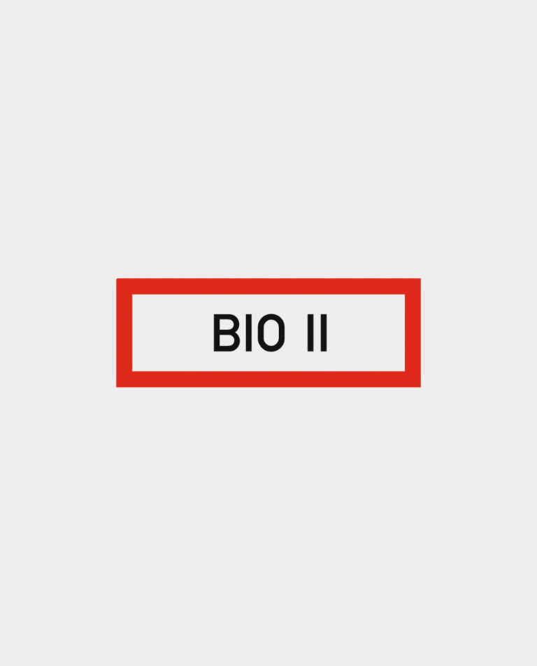 Hinweisschild „Feuerwehr BIO II“ im Format 21,0 x 7,4 cm zur eindeutigen Kennzeichnung von Bereichen oder Anlagen im Zusammenhang mit biologischen Sicherheitsstufen. Das Schild dient der klaren Orientierung für Einsatzkräfte und unterstützt eine schnelle und sichere Identifikation relevanter Zonen im Notfall. Es ist ideal geeignet für den Einsatz in Laboren, Forschungseinrichtungen, Kliniken und anderen Einrichtungen, in denen mit biologischen Arbeitsstoffen gearbeitet wird und eine eindeutige Sicherheitskennzeichnung erforderlich ist.